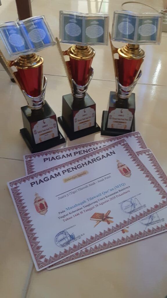 Tiga Siswa terbaik MTs An Najah mengikuti perlombaan Pelaksanaan Musabaqah Tilawatil Qur’an (MTQ) Tingkat Kelurahan Tangkerang Utara, Kecamatan Bukit Raya, Kota Pekanbaru yang digelar pada tanggal 28 Agustus 2025 di mesjid Nurul Ikhlas Jl. Gelugur Ujung Gg. Kandis RW 04. Selamat dan Sukses kepada : 1. Hamdi Muhammad, kelas IX.1 meraih Juara 3 Tilawah Anak Putra 2. Shoofi Nur Aqillah, Kelas VII.1 meraih Juara 3 Tilawah Anak Putri 3. M. Khadafi Al Mulk, Kelas VIII.2 meraih Juara 3 Tahfidz Anak Putra (SJ) Shoofi Nur Aqillah M. Khadafi Al Mulk Hamdi Muhammad https://mtsannajahpekanbaru.sch.id/wp-content/uploads/2025/09/WhatsApp-Video-2025-08-28-at-11.08.23.mp4
