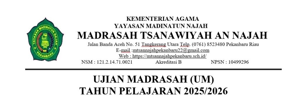 LINK SOAL UJIAN MADRASAH MTs AN NAJAH PEKANBARU 2025/2026